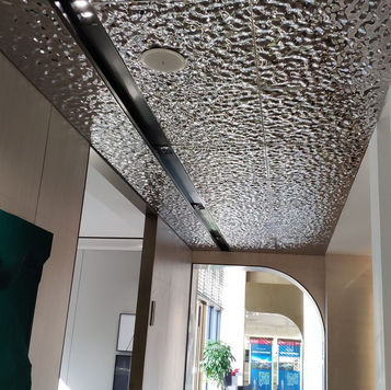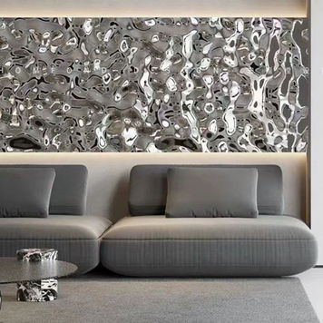 Water ripple stainless steel sheets are high-end decorative metal panels featuring a fluid, reflective surface that mimics the natural movement of water. These sheets add a dynamic, luxurious effect to any interior or architectural space, combining artistic design with the durability and hygiene of stainless steel.